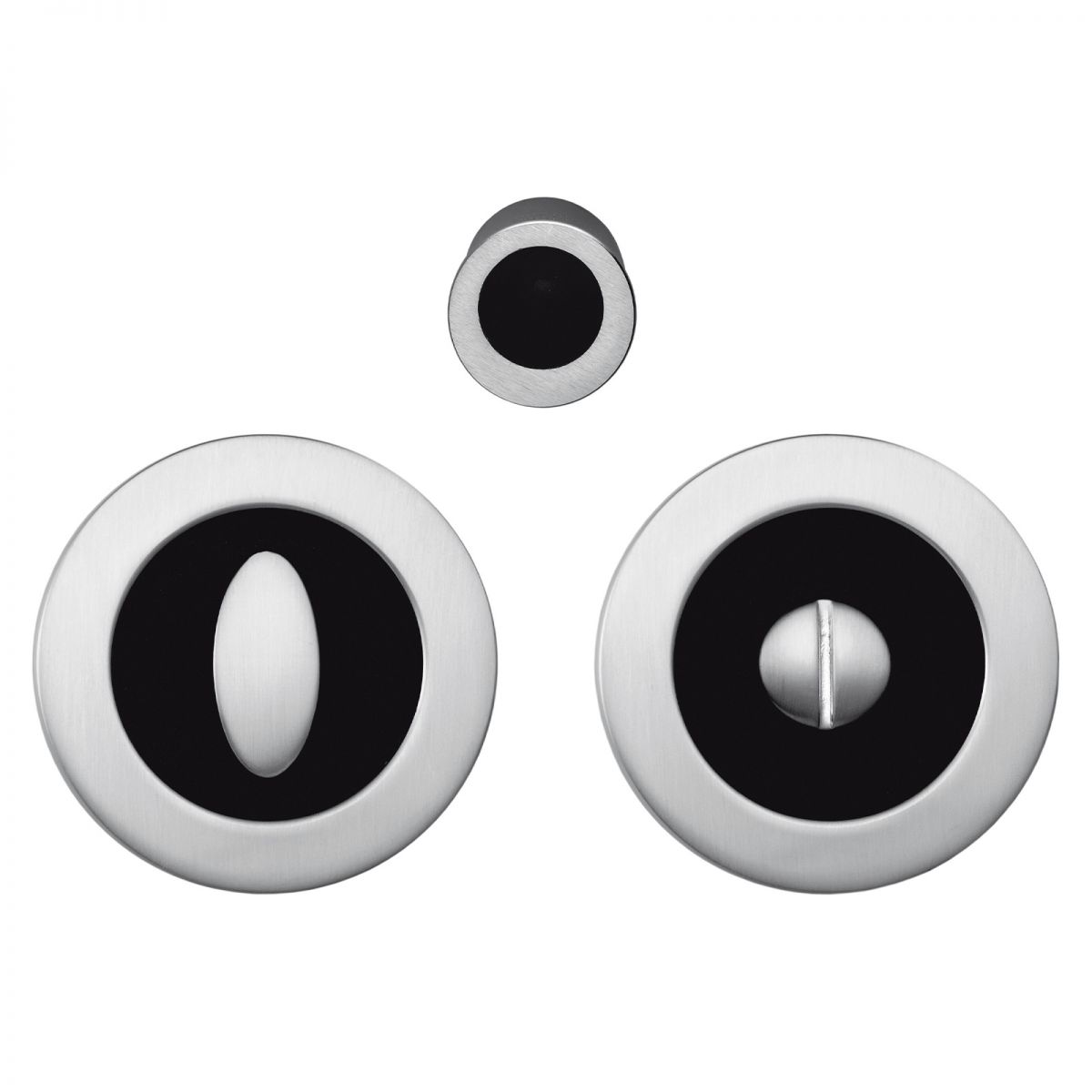Maniglia per porta scorrevole Enter Colombo Design con serratura composto da due maniglie ad incasso con dispositivo chiusura nottolino, maniglietta di trascinamento senza serratura. Design by Luca Colombo.