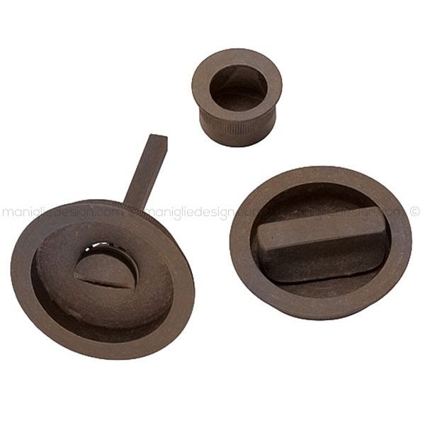 Maniglia porta scorrevole con nottolino ferro vecchio Metal Style FE09074 diametro 48 mm.
