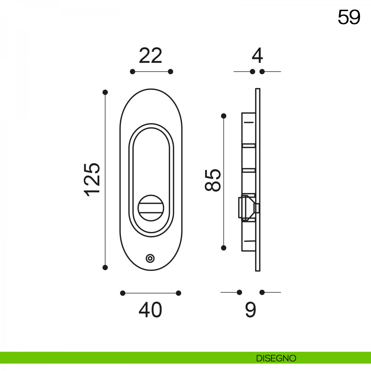Maniglia incasso ovale con nottolino e taglio vite per porta scorrevole Manital art.59.