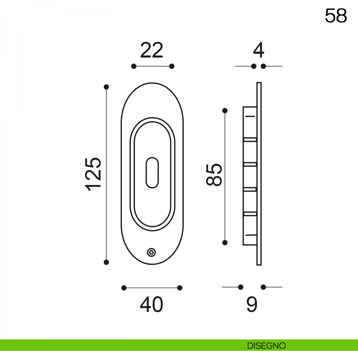 Maniglia incasso ovale foro chiave per porta scorrevole Manital art.58.
