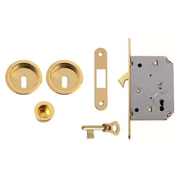 Kit tondo con nottolino + nottolino con trascinatore e serratura per porta scorrevole NIC 101 Comit.