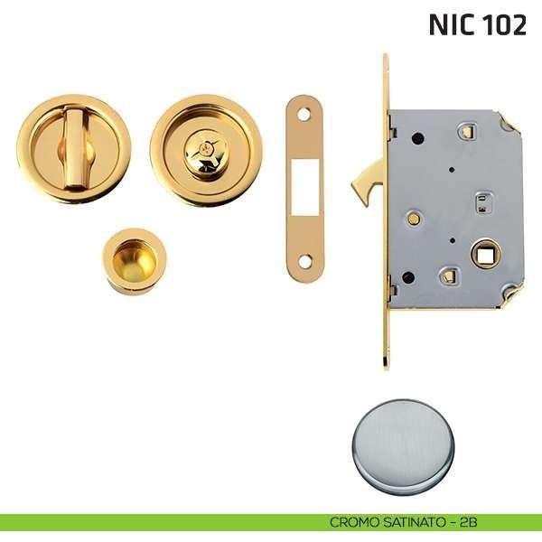 Kit tondo foro chiave con chiave, trascinatore e serratura per porta scorrevole NIC 102 Comit.