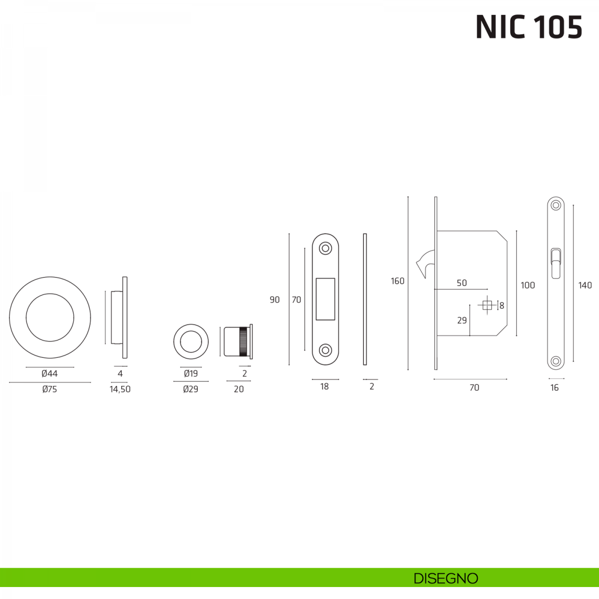 Kit tondo foro chiave + trascinatore per porta scorrevole NIC 105 Comit.