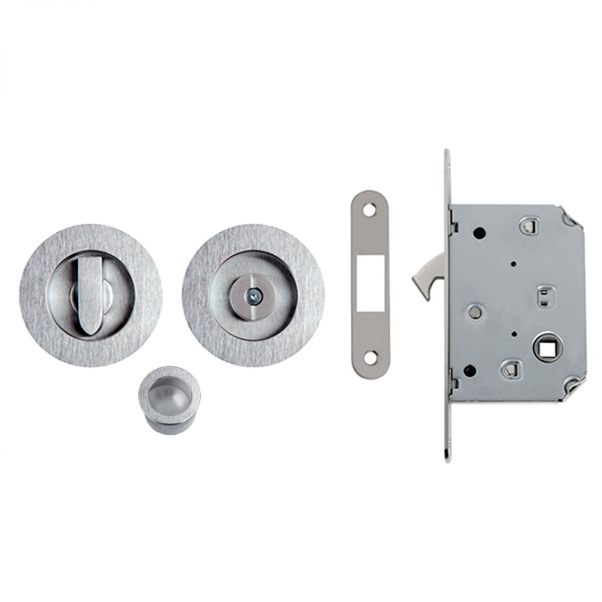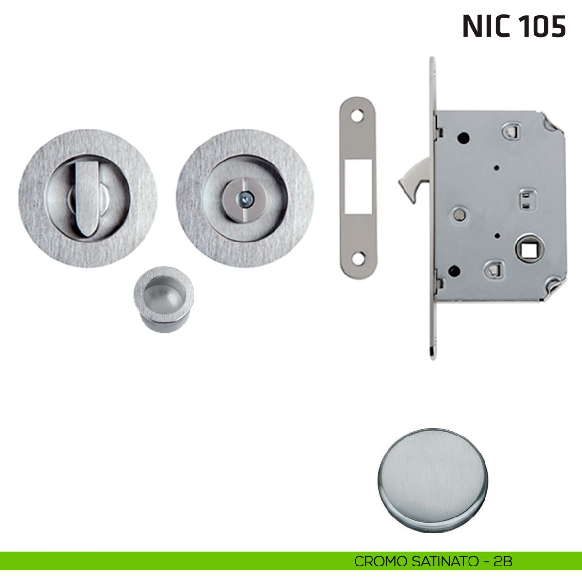 Kit tondo con nottolino + taglio vite con trascinatore e serratura per porta scorrevole NIC 104 Comit.