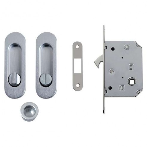 Kit ovale con nottolino + taglio vite con trascinatore e serratura per porta scorrevole NIC 204 Comit.