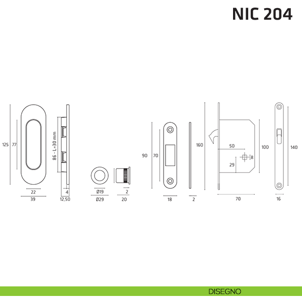 Kit ovale foro chiave con chiave, trascinatore e serratura per porta scorrevole NIC 204 Comit.