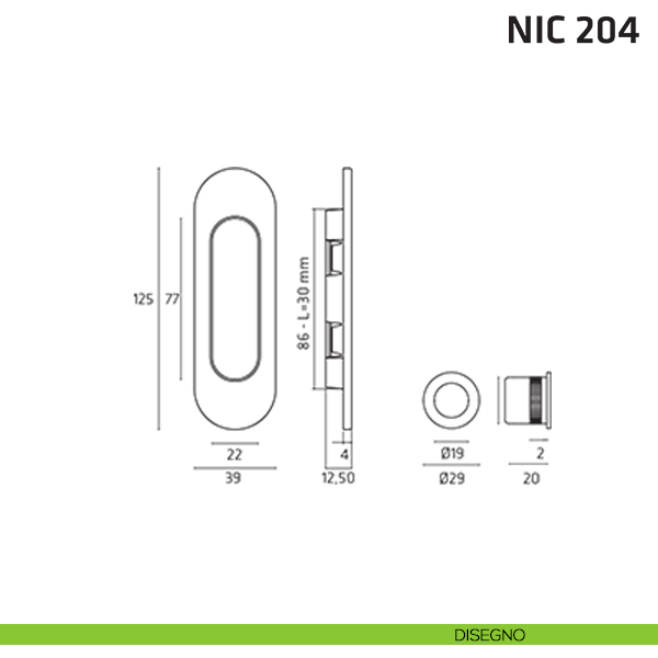La maniglia ovale per porta scorrevole NIC 204 è stata pensata per chi desidera una maniglia per porta a scrigno dal costo contenuto. La maniglia NIC 204 Comit appartiene alla serie di maniglia incasso in ottone. Si tratta di un modello semplice e al tempo stesso decisamente contemporaneo e innovativo, adatto a poter interpretare al meglio le ultime tendenze del mondo del design. La maniglia incassata per porta scorrevole NIC 204 è stata pensata per valorizzare ogni ambiente con un tocco di design Made in Italy.