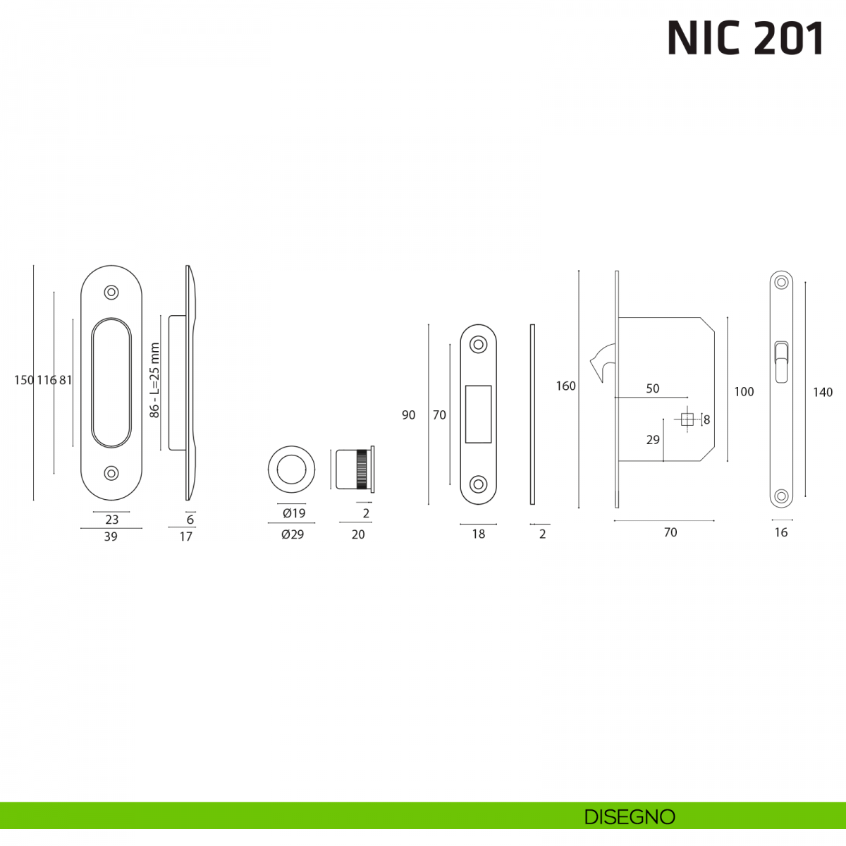Kit ovale foro chiave con chiave, trascinatore e serratura per porta scorrevole NIC 201 Comit.