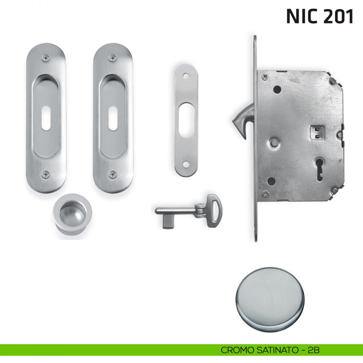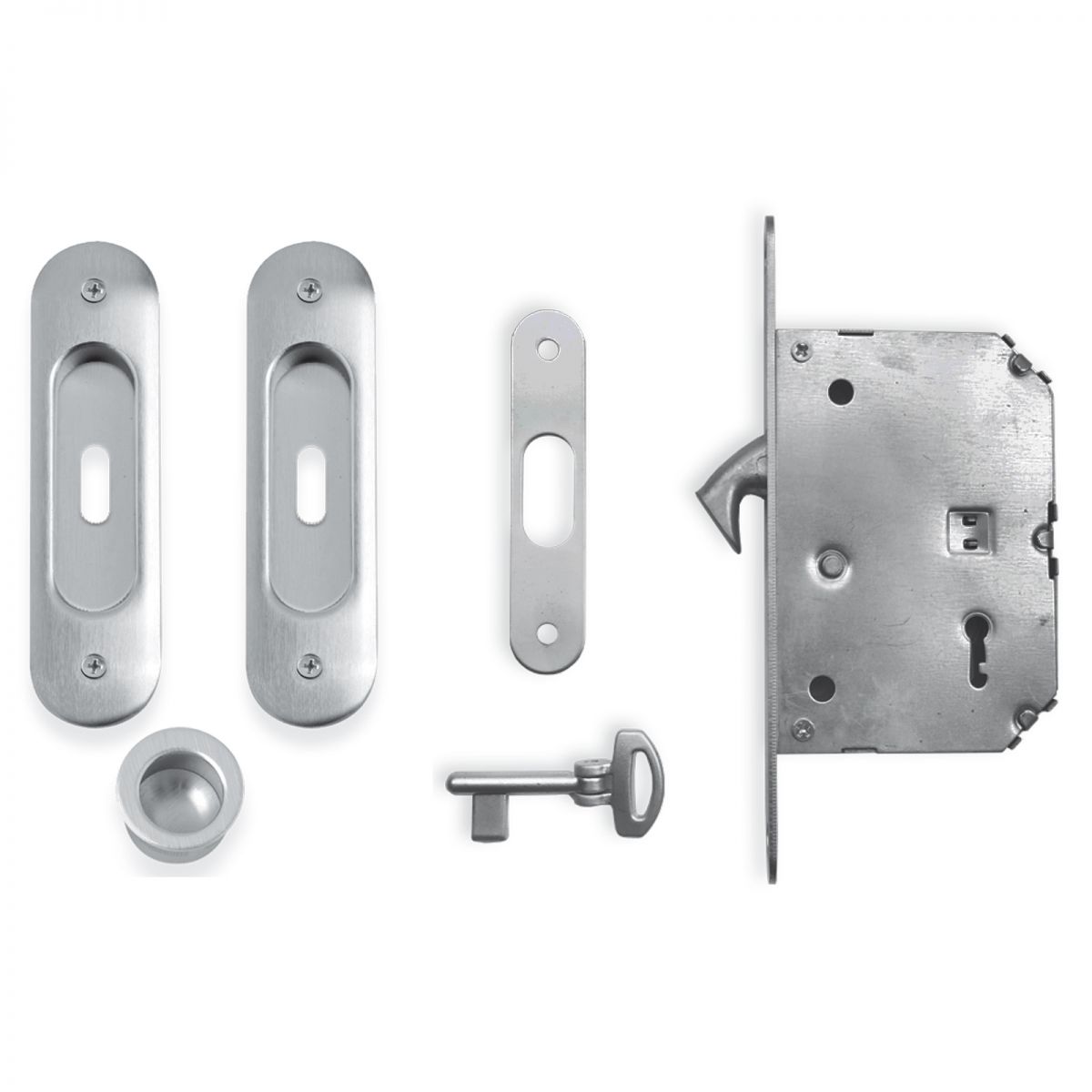 Kit ovale con nottolino + taglio vite con trascinatore e serratura per porta scorrevole NIC 201 Comit.