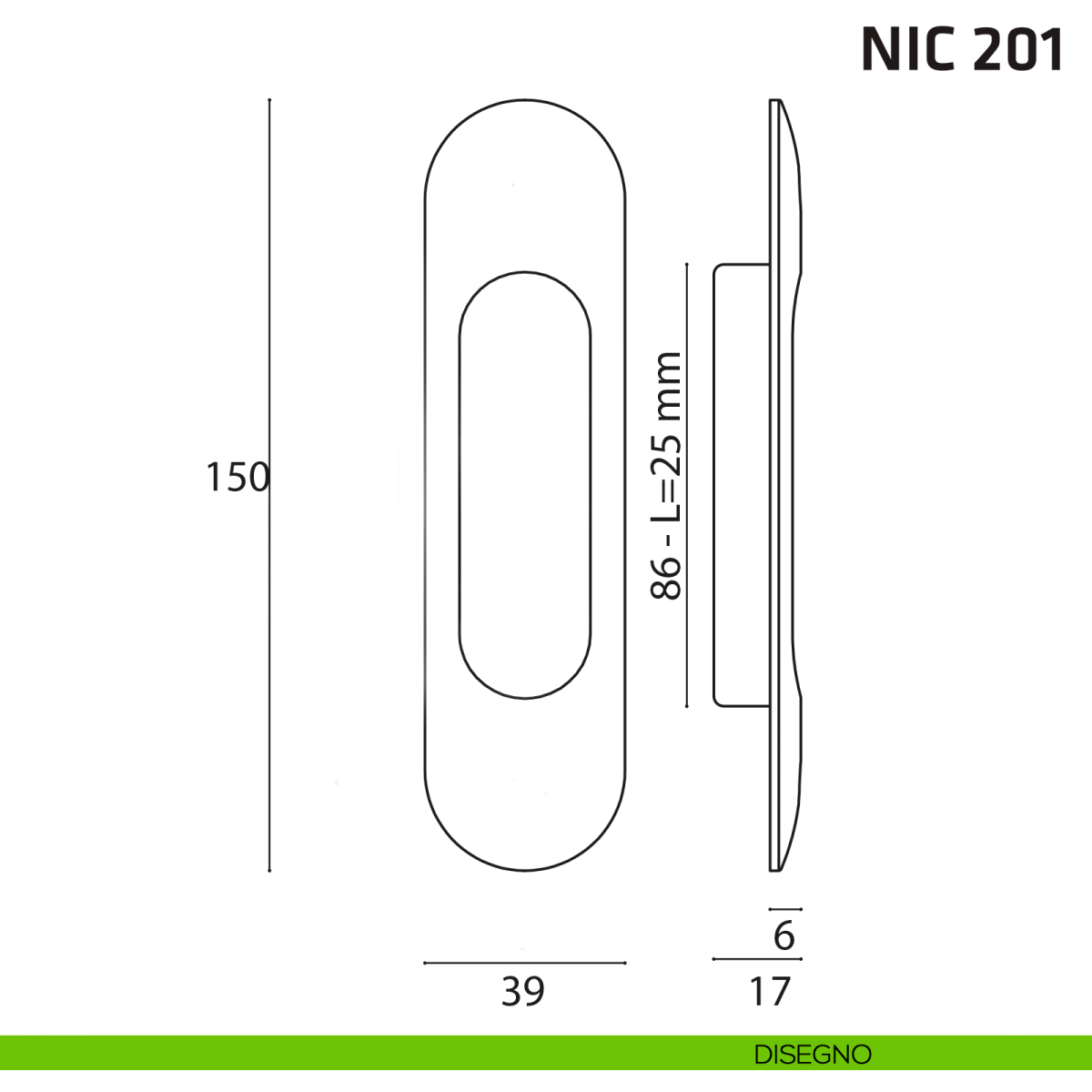 Maniglia incasso ovale cieca per porta scorrevole NIC 201 Comit.