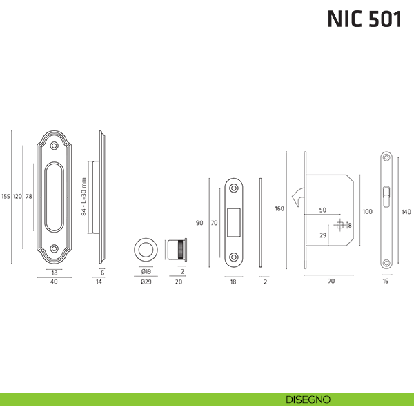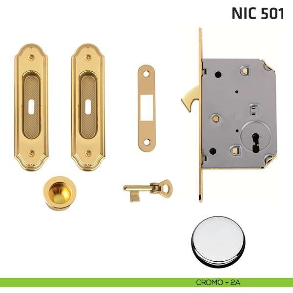 Kit ovale foro chiave con chiave, trascinatore e serratura per porta scorrevole NIC 501 Comit.