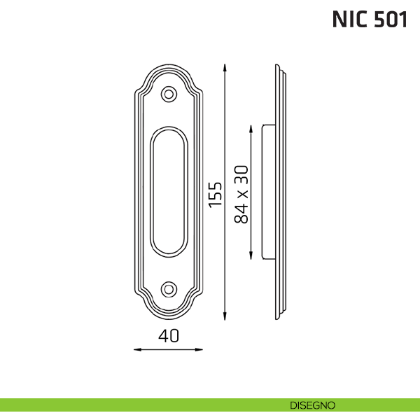 La maniglia ovale per porta scorrevole NIC 501 è stata pensata per chi desidera una maniglia per porta a scrigno dal costo contenuto. La maniglia NIC 501 Comit appartiene alla serie di maniglia incasso in ottone. Si tratta di un modello semplice e al tempo stesso decisamente contemporaneo e innovativo, adatto a poter interpretare al meglio le ultime tendenze del mondo del design. La maniglia incassata per porta scorrevole NIC 501 è stata pensata per valorizzare ogni ambiente con un tocco di design Made in Italy.