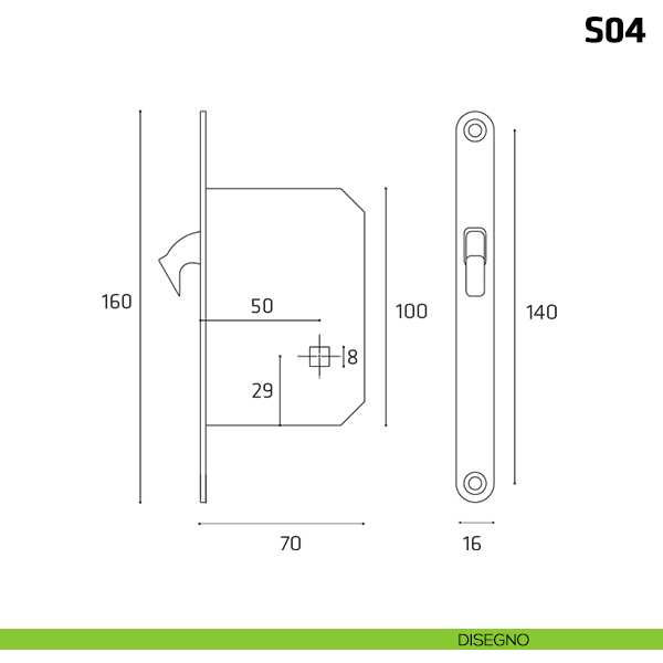 La serratura per porta scorrevole S04 è stata pensata per chi desidera una serratura a gancio dal costo contenuto. Il serratura Comit S04 appartiene alla serie di serrature a gancio per scorrevoli. Si tratta di un modello semplice e al tempo stesso decisamente contemporaneo e innovativo, adatto a poter interpretare al meglio le ultime tendenze del mondo del design. La serratura per porta a scrigno S04 è stata pensata per valorizzare ogni ambiente con un tocco di design Made in Italy.