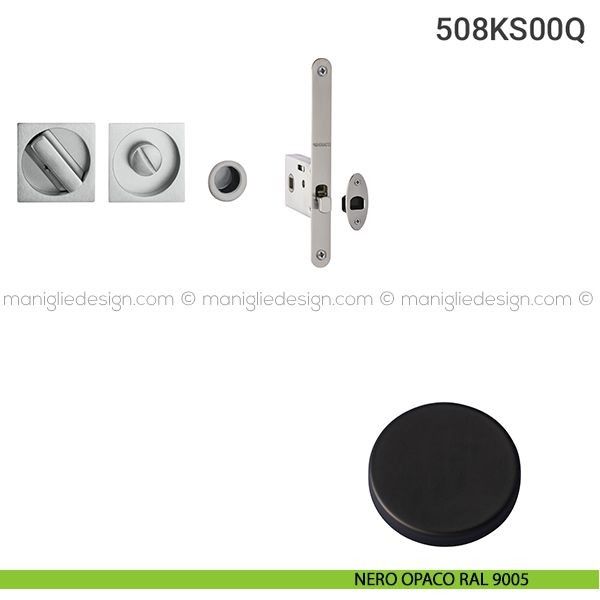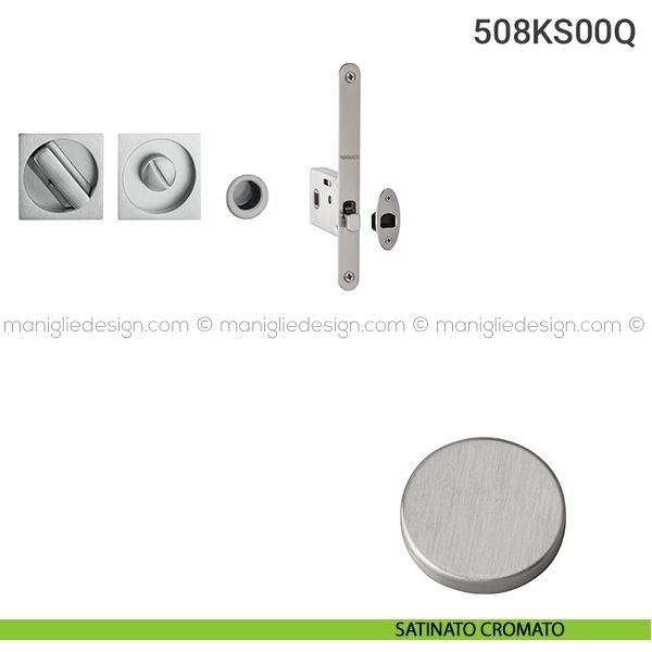 Kit placche incasso quadrate con nottolino per porte scorrevoli 508 Reguitti con frontalino di trascinamento e serratura 026SR. Design by Studio Reguitti.