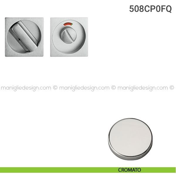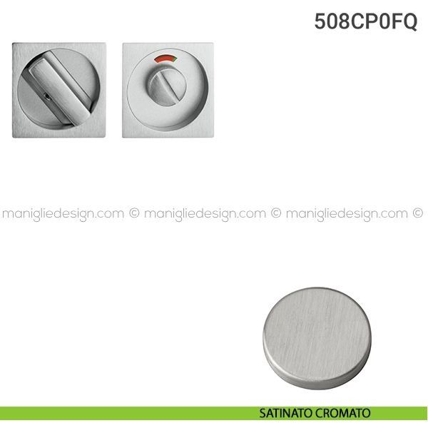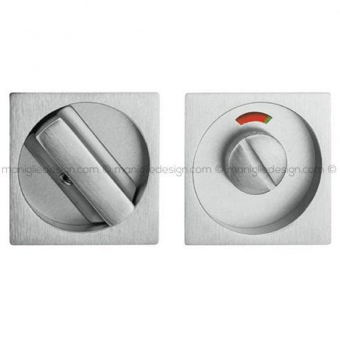 Placche incasso quadrate con nottolino per porte scorrevoli 508 Reguitti con segnalatore libero/occupato. Design by Studio Reguitti.