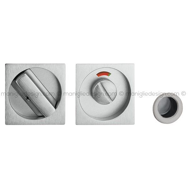 Placche incasso quadrate con nottolino per porte scorrevoli 508 Reguitti con segnalatore libero/occupato. Design by Studio Reguitti.