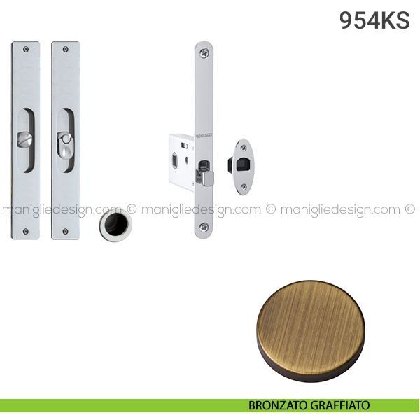 Kit placche incasso rettangolari con nottolino pendente per porte scorrevoli 954 Reguitti con frontalino di trascinamento e serratura 026SR.