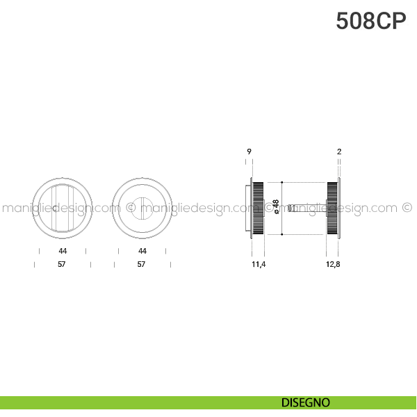 Placche incasso tonde con nottolino per porte scorrevoli 508 Reguitti. Design by Studio Reguitti.
