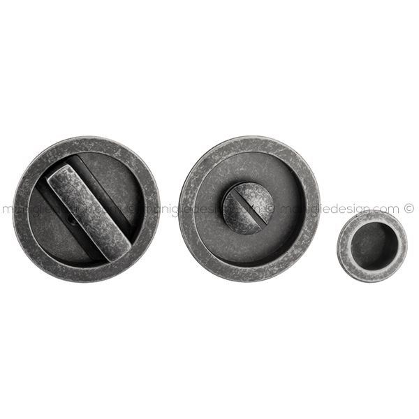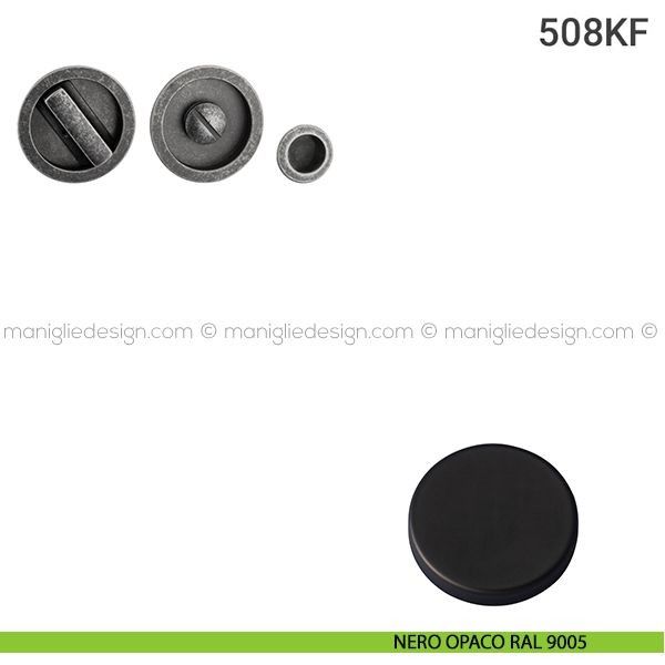Kit placche incasso tonde con nottolino per porte scorrevoli 508 Reguitti con frontalino di trascinamento. Design by Studio Reguitti.
