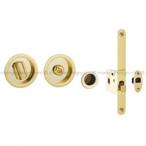 Kit placche incasso tonde con nottolino per porte scorrevoli 573 Reguitti con frontalino di trascinamento e serratura 026SR.