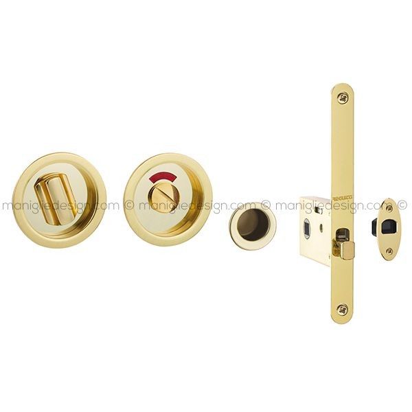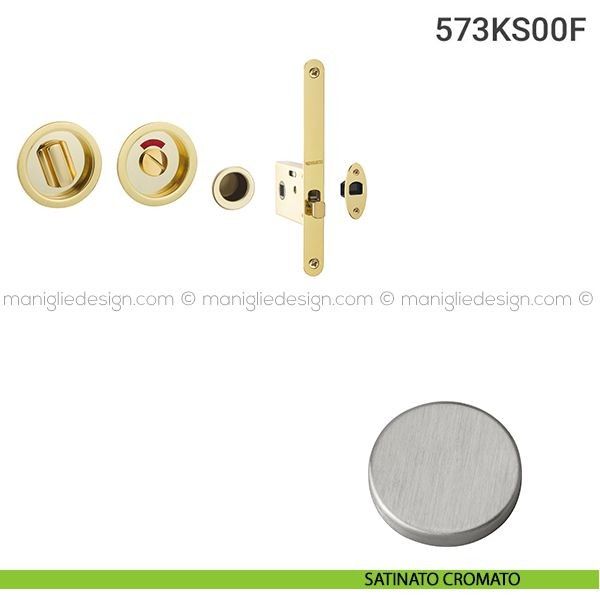 Kit placche incasso tonde con nottolino per porte scorrevoli 573 Reguitti con segnalatore libero/occupato con frontalino di trascinamento e serratura 026SR.