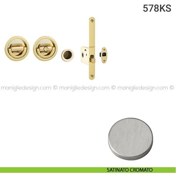 Kit placche incasso tonde con nottolino ad anello e folle per porte scorrevoli 578 Reguitti con frontalino di trascinamento e serratura 026SR.