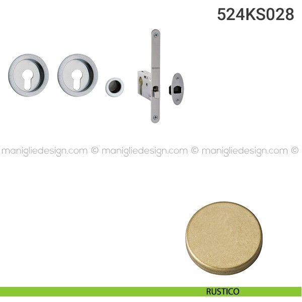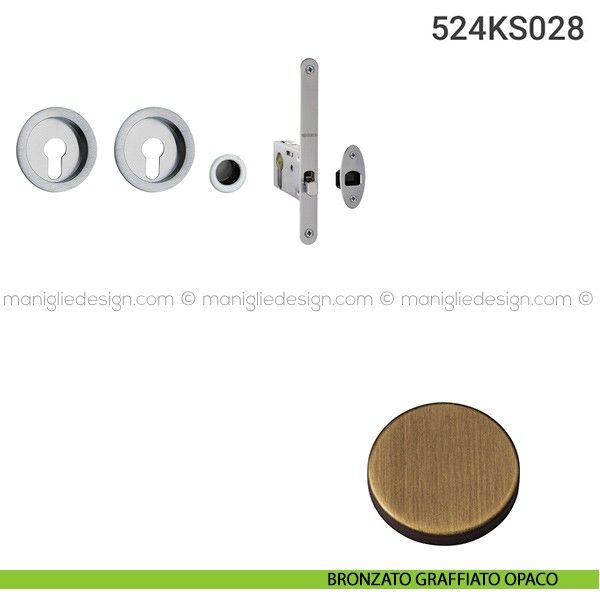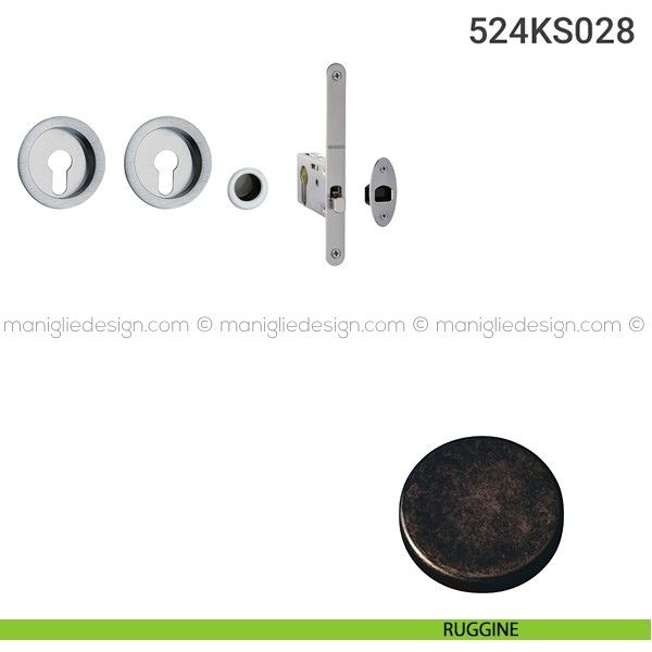 Kit placche incasso tonde con foro yale per porte scorrevoli 524 Reguitti con frontalino di trascinamento e serratura 028SR.