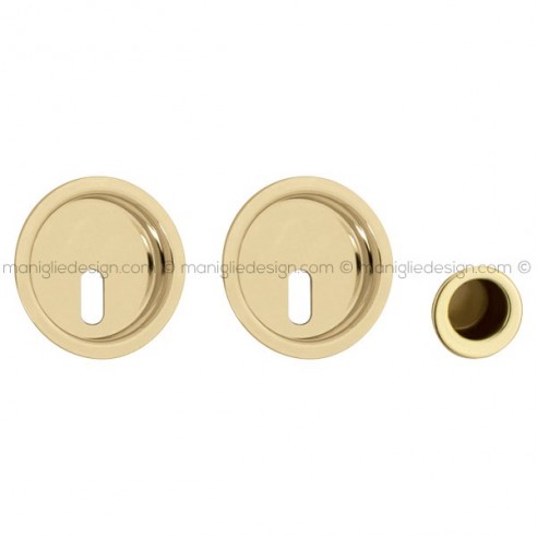 Kit placche incasso tonde con foro chiave per porte scorrevoli 808 Reguitti con frontalino di trascinamento e serratura 16SR.