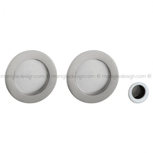 Kit placche incasso tonde cieche per porte scorrevoli T60 Reguitti con frontalino di trascinamento. Design by Studio Reguitti.