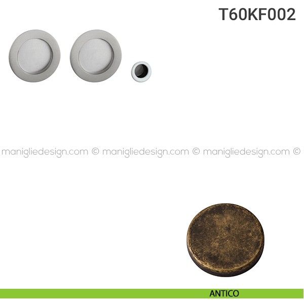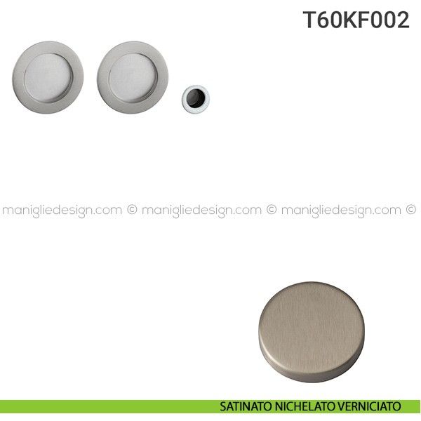 Kit placche incasso tonde con foro chiave a spillo per porte scorrevoli T60 Reguitti con frontalino di trascinamento e serratura 027SR.