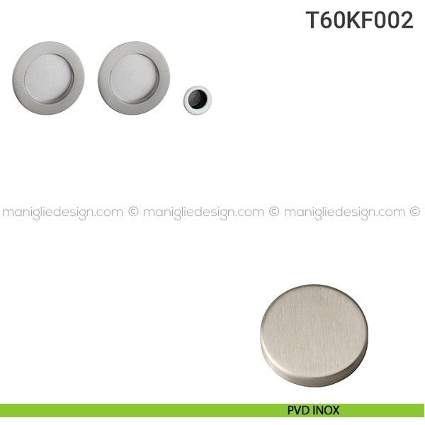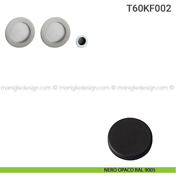Kit placche incasso tonde cieche per porte scorrevoli T60 Reguitti con frontalino di trascinamento.