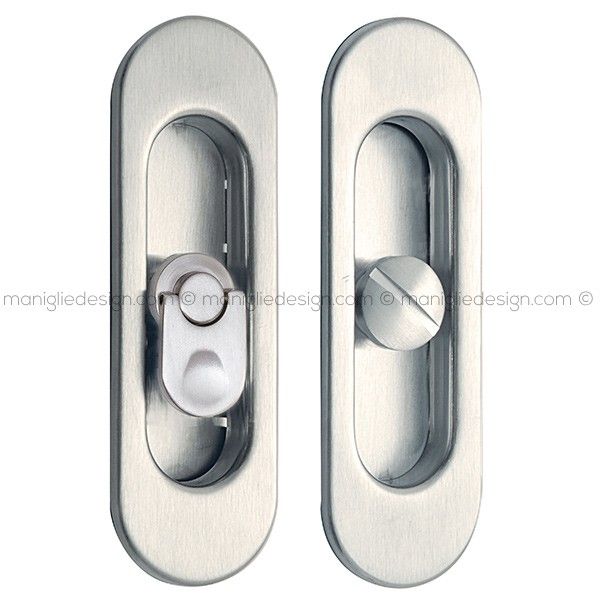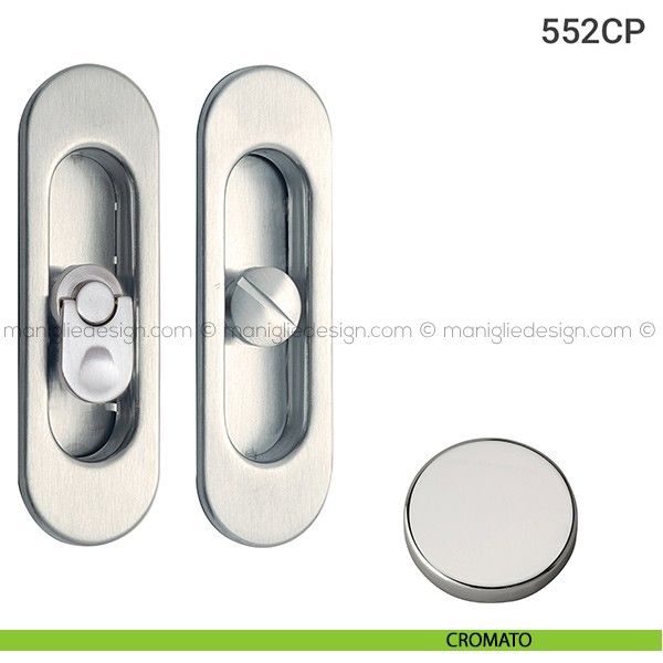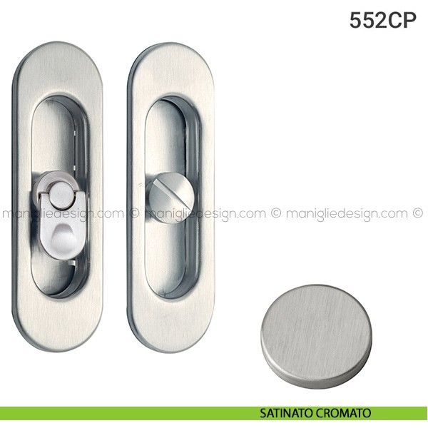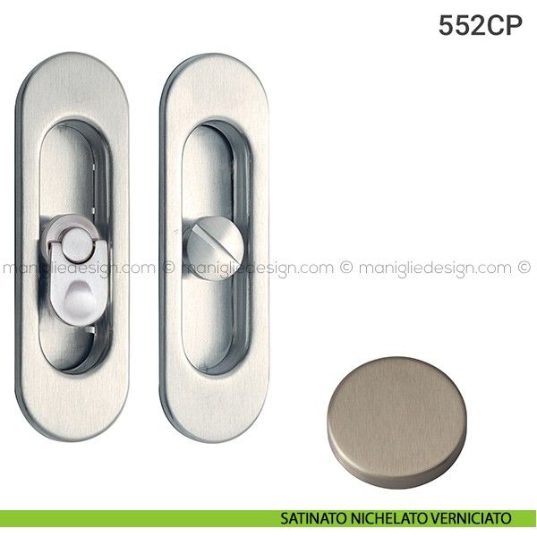 Kit placche incasso ovali con nottolino pendente per porte scorrevoli 552 Reguitti con frontalino di trascinamento e serratura 026SR.