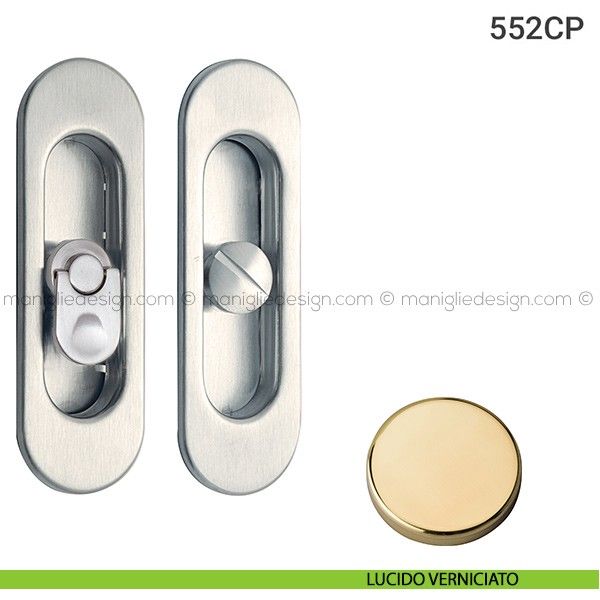 Placche incasso ovali con nottolino pendente per porta scorrevole 552 Reguitti. Design by Studio Reguitti.