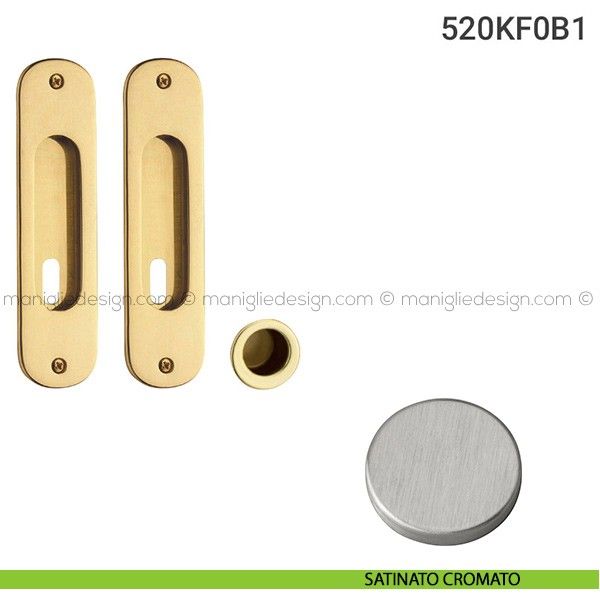 Kit placche incasso ovali foro chiave basso per porta scorrevole 520 Reguitti con frontalino di trascinamento. Design by Studio Reguitti.