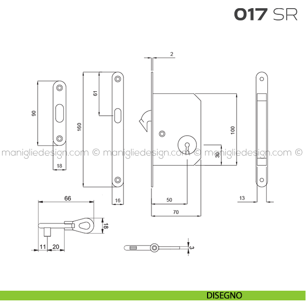 Serratura con foro chiave bordo tondo entrata 30 mm articolo 007 SR Reguitti.