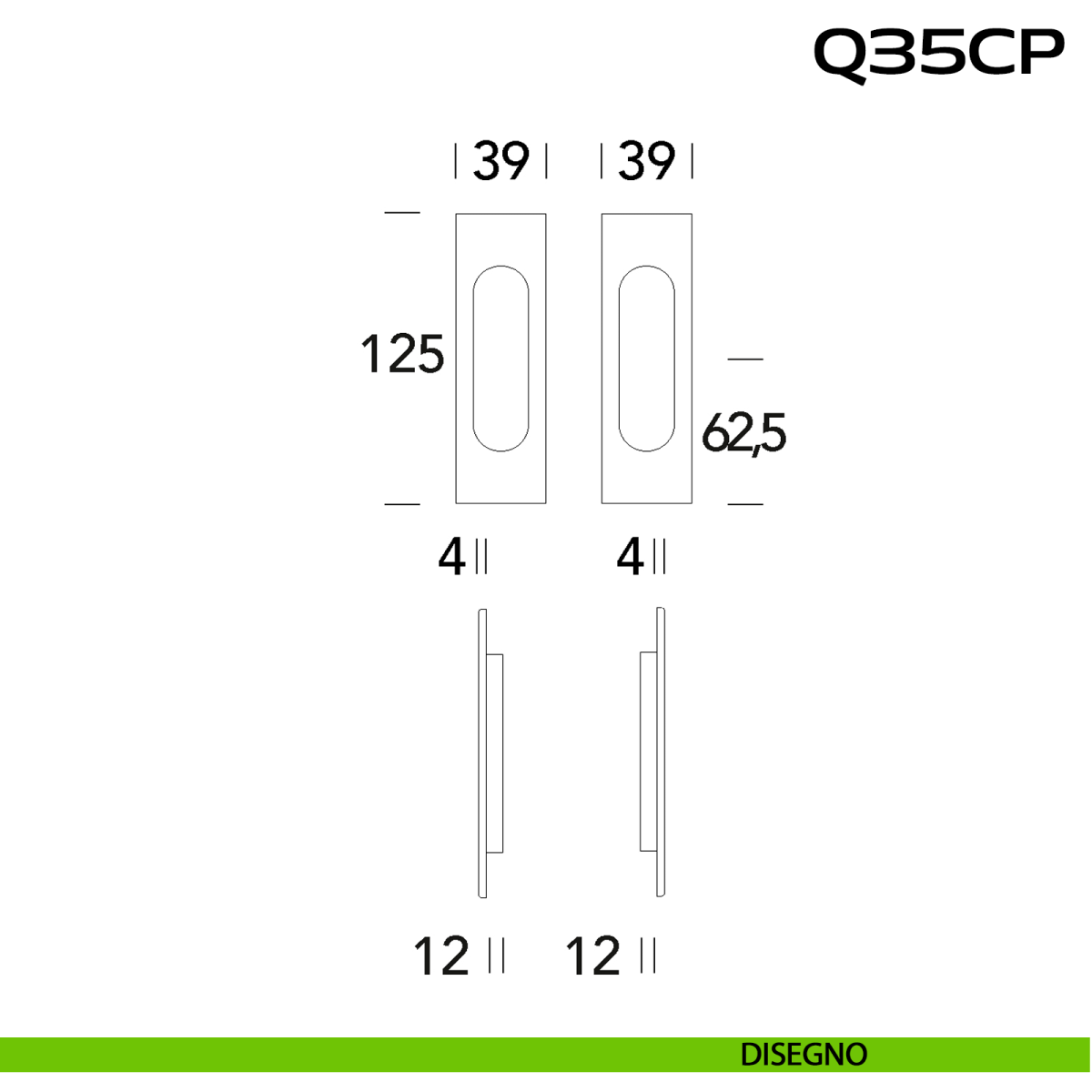 Kit placche incasso rettangolari cieche in acciaio per porta scorrevole Q35 PI Reguitti Inox. Design by Studio Reguitti Inox.