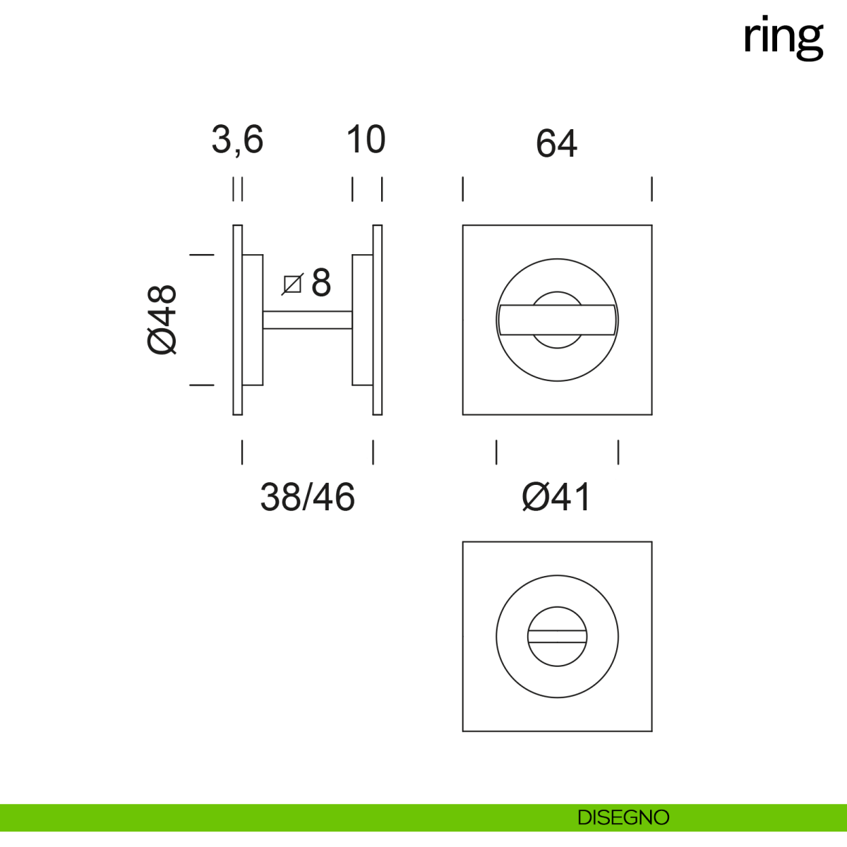 Maniglia per porta scorrevole quadrata con nottolino, taglio vite e ditale di trascinamento Ring dnd handles.