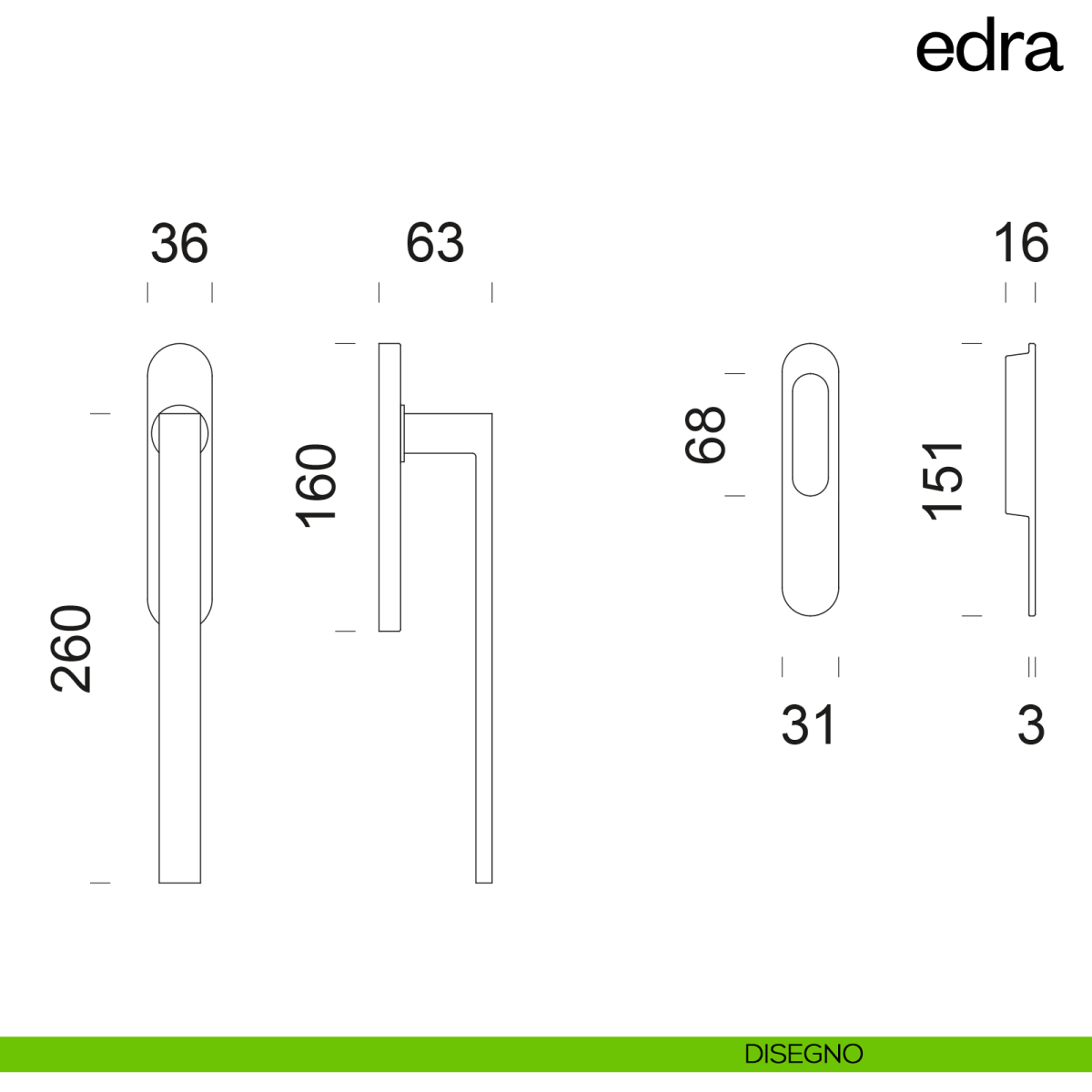 Maniglia per finestra martellina DK Edra 02 dnd.