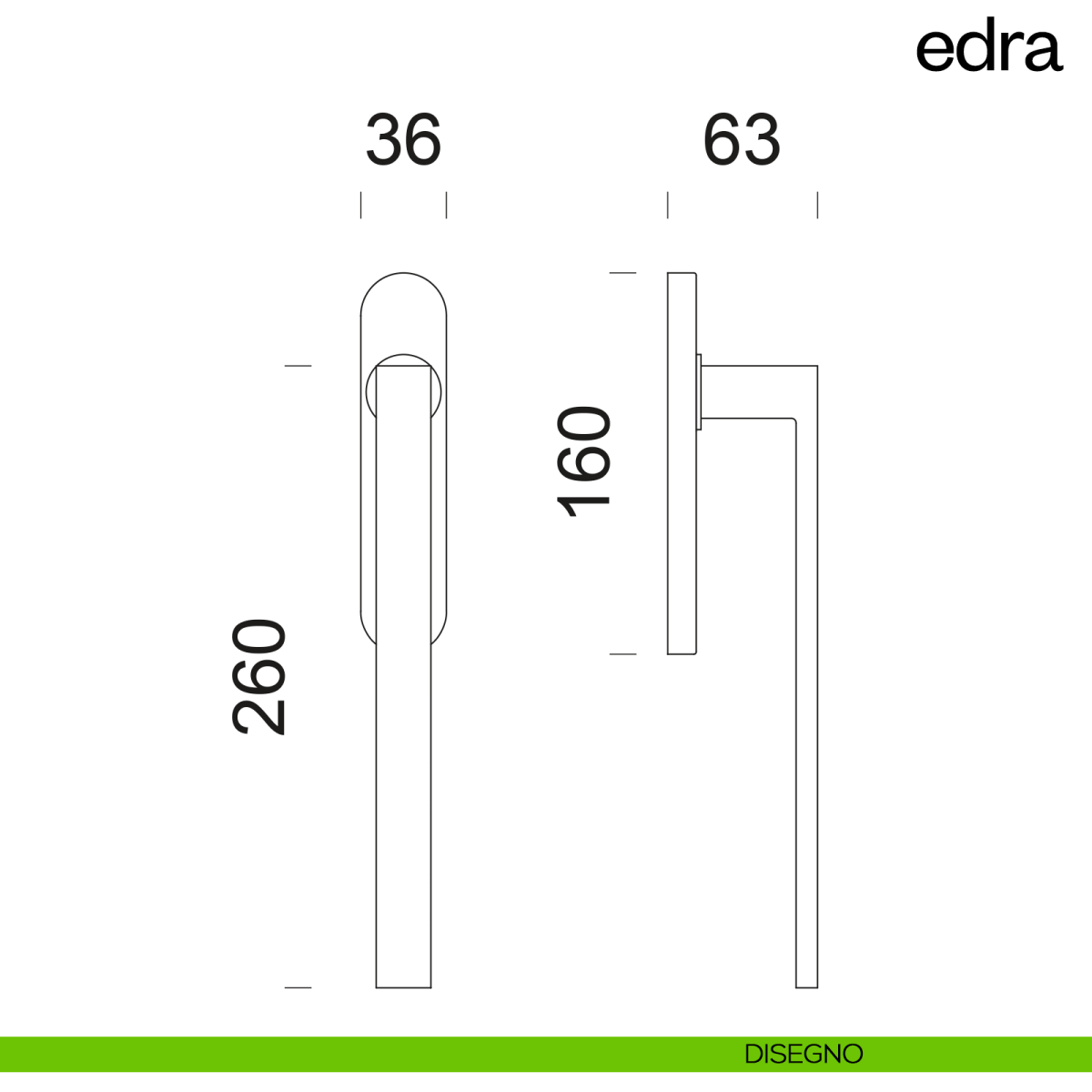 Maniglia per finestra martellina DK Edra 02 dnd.