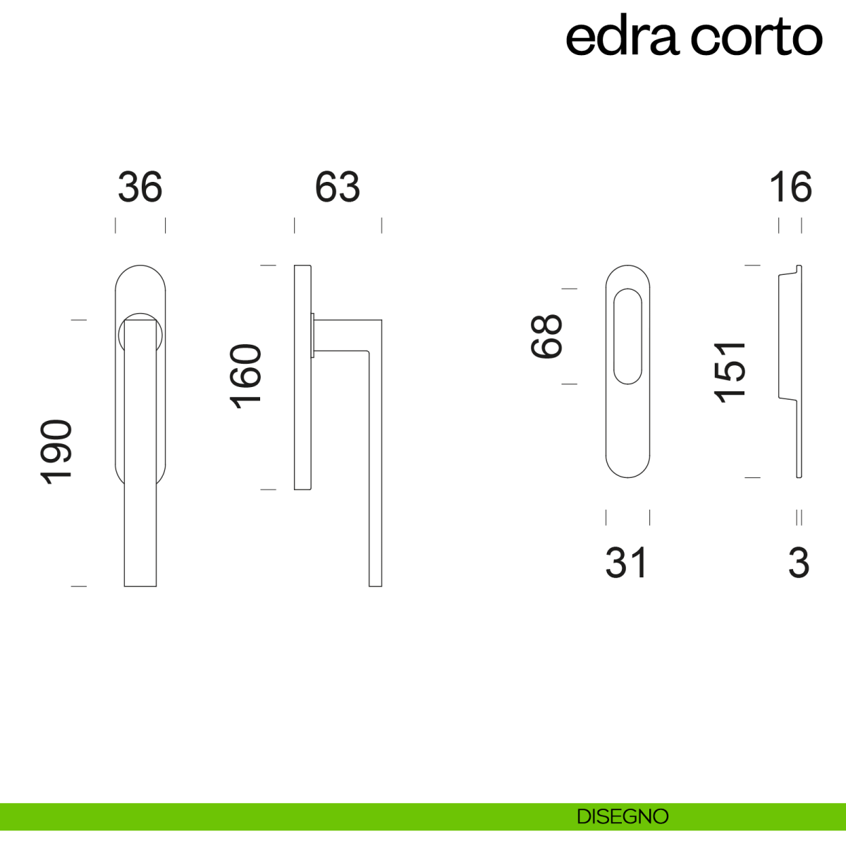 Maniglione per alzante scorrevole Edra 02 Corto dnd Handles singolo comprensivo di maniglia incasso.