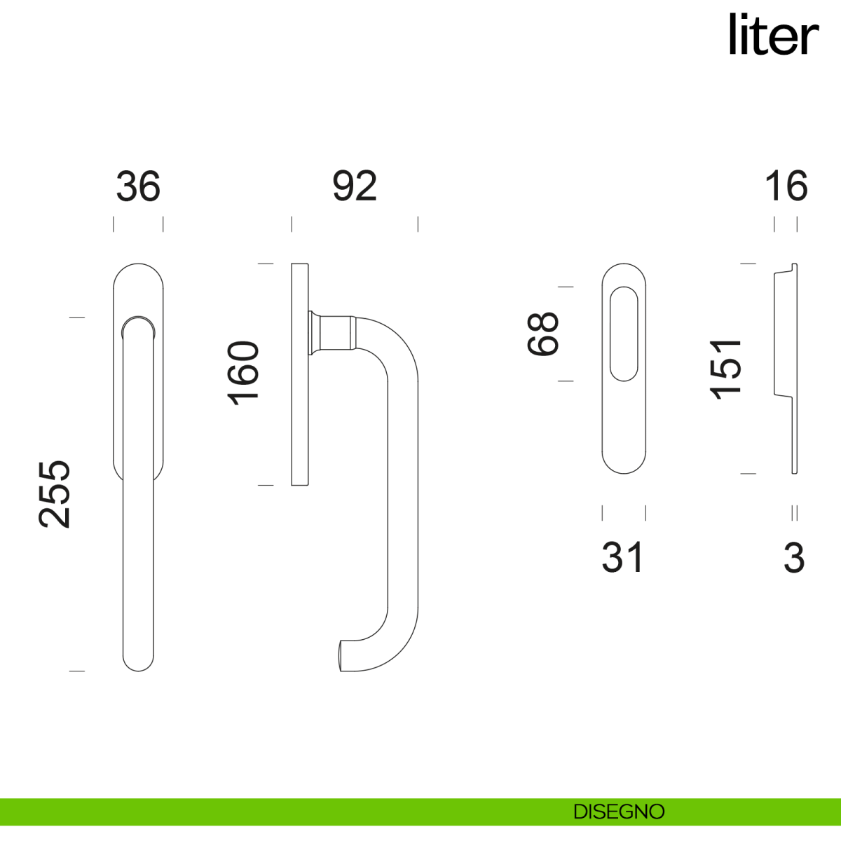 Maniglione per alzante scorrevole Liter dnd Handles singolo comprensivo di maniglia incasso.