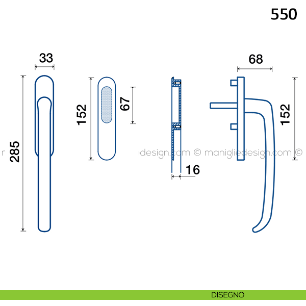 Maniglione per alzante scorrevole 550 singolo Frascio comprensivo di maniglia incasso. Design by Frascio.