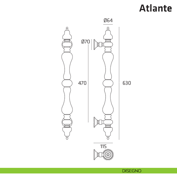Il maniglione classico per portone Atlante è stata pensato per chi desidera una maniglione classico per l'arredamento in stile antico. Il maniglione Atlante Comit è l'accessorio per porta ideale per tutti gli ambienti che traggono ispirazione dal passato. Impreziosito da affascinanti particolari retrò, come le finiture in ottone bronzato, il maniglione in stile antico arreda diverse tipologie di porte. Disegnato da abili maestri che lavorano l'ottone, il maniglione per porta d'ingresso Atlante si contraddistingue per i motivi ornamentali che si intrecciano dando vita a un prodotto unico nel suo genere. Atlante viene prodotto dalle sapienti mani di artigiani italiani, che intraprendono il desiderio del disegnatore che l'ha ideata. Il maniglione in ottone è un elemento d'arredo indispensabile per gli habitat più tradizionali e arreda con gusto e stile permettendo a chiunque di abbinarlo facilmente a tutte le tipologie di porte esterne e portoni in finiture in legno. Il maniglione in ottone bronzato Atlante è stato pensato per valorizzare ogni ambiente con un tocco di design Made in Italy.