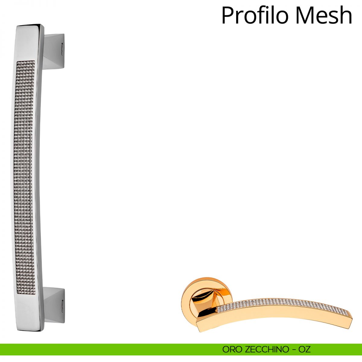 Maniglione con Swarovski per porta Profilo Mesh Linea Calì senza rosette.