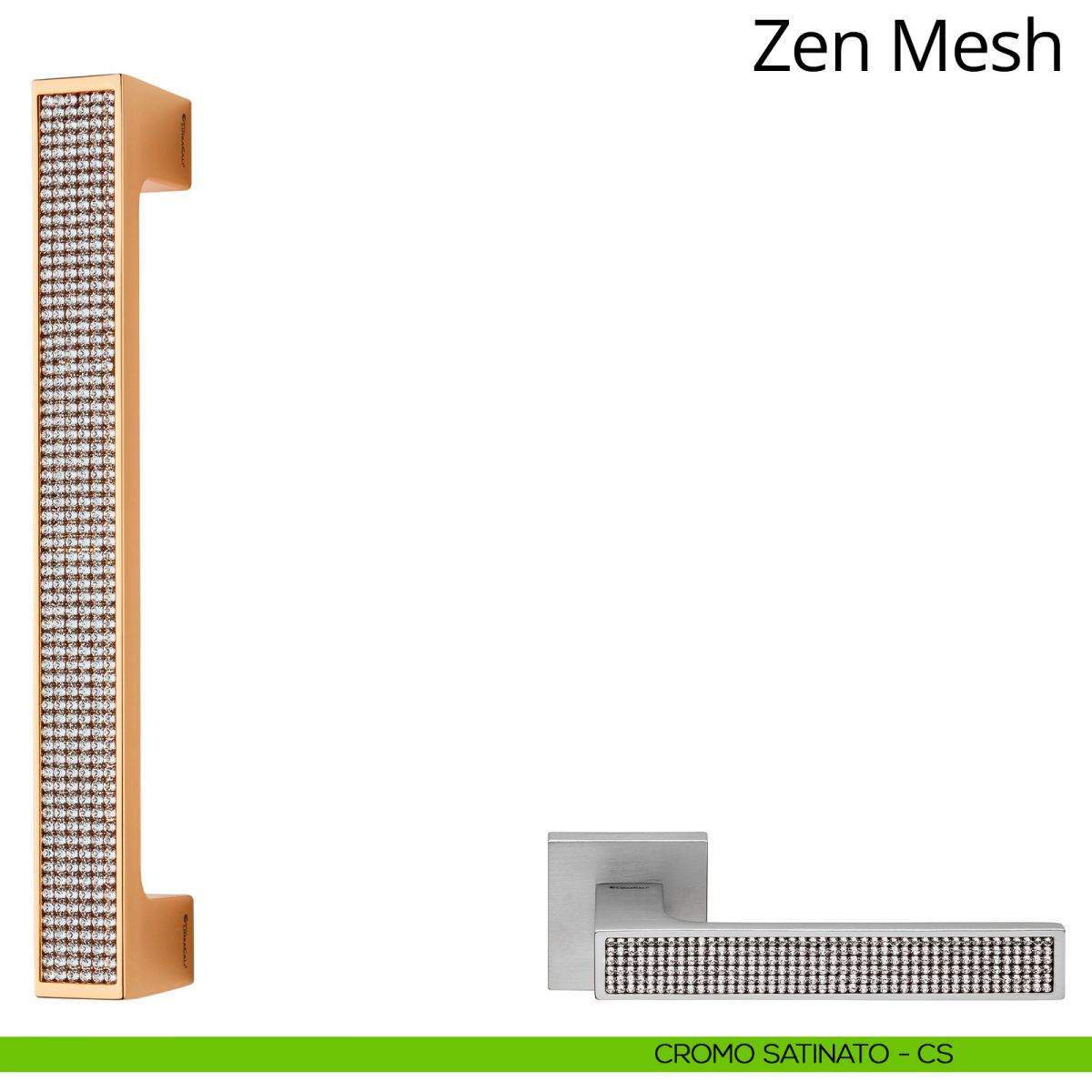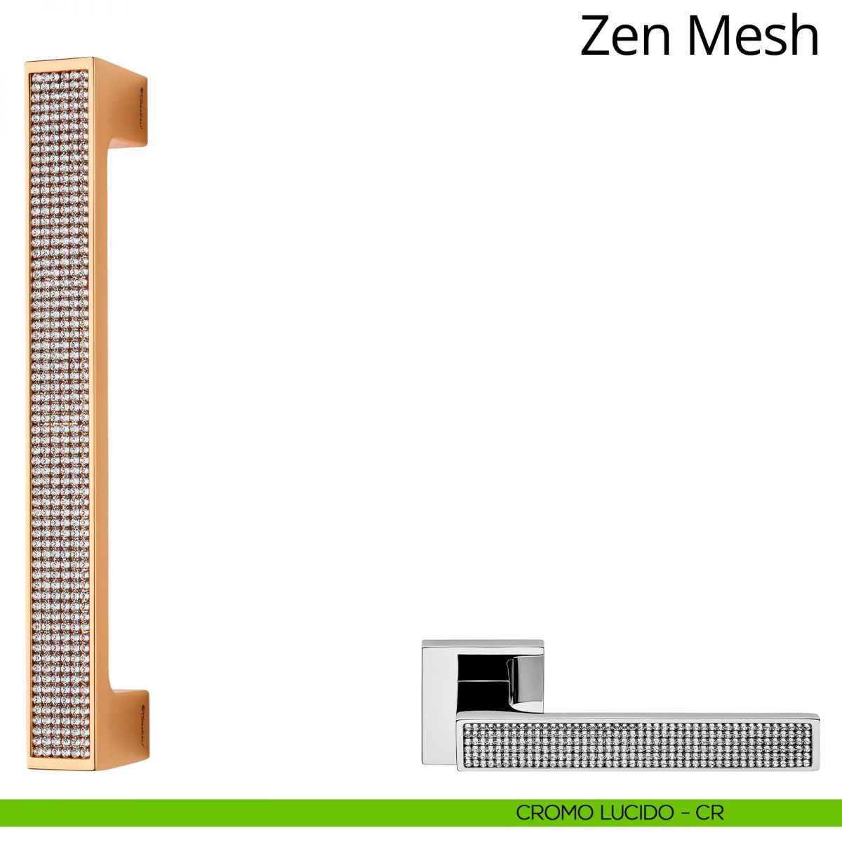 Zen Mesh Linea Calì è la nuova collezione di maniglie con un grande pavé di cristalli Swarovski® che sottolinea le linee decise e rigorose, nate per distinguersi negli ambienti di design. Caratterizzata da un'impugnatura importante capace di riflettere l'ambiente circostante. Per garantire la loro perfetta esecuzione, ed essere valorizzati dal particolare processo di lucidatura, lo stampo utilizzato per questa maniglia è caratterizzato da un’elevatissima precisione, la stessa che Linea Calì ripone in ogni collezione di alta gamma.