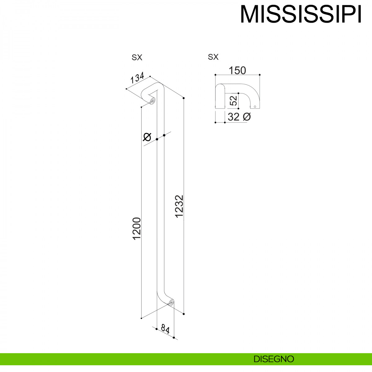 Maniglione zancato in acciaio per porta diametro 32 mm Mississippi Fimet Inox