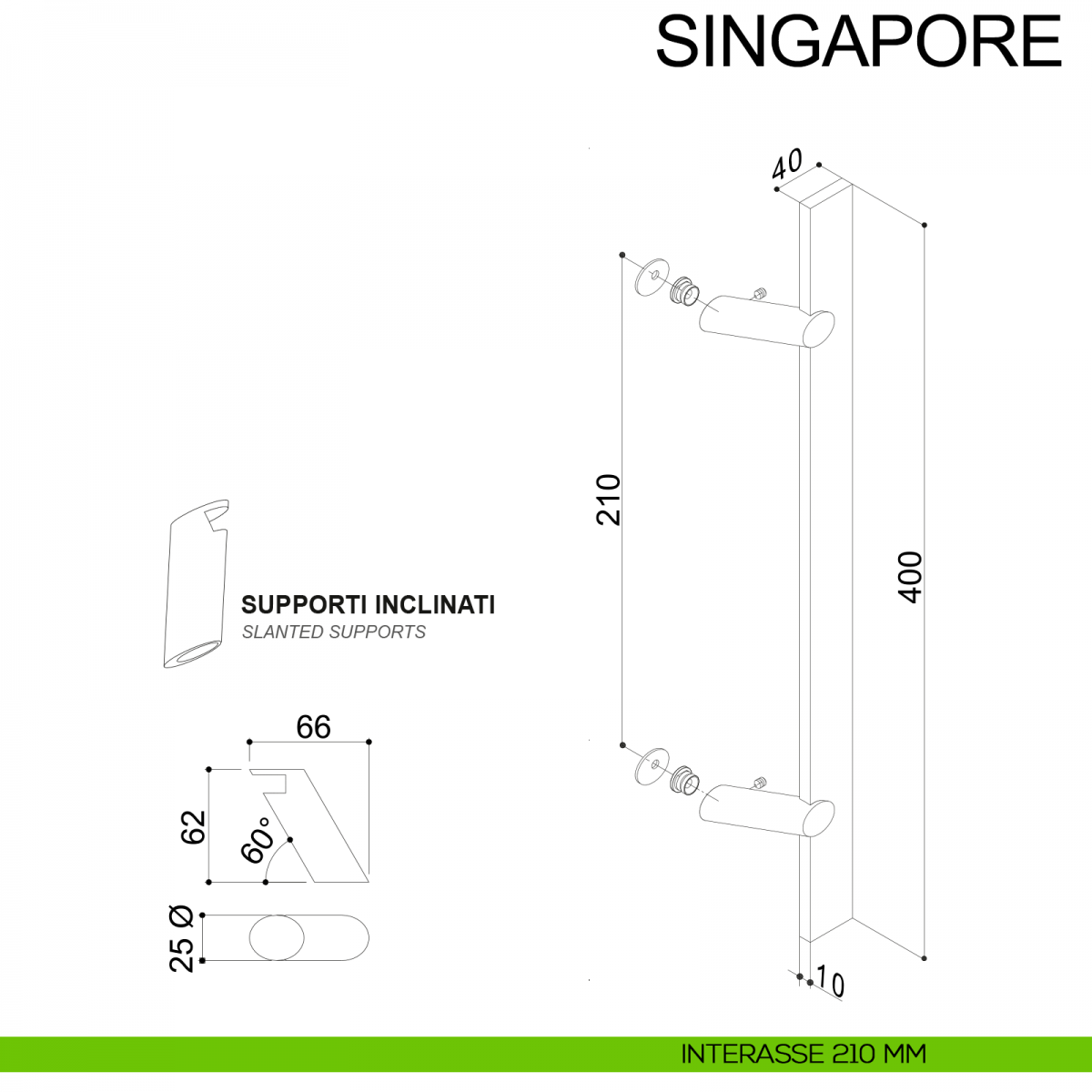 Singapore è il maniglione squadrato in acciaio della linea Square Fimet Inox Project. Il maniglione squadrato Singapore è compressivo di accessori per il fissaggio su porte in legno, vetro e ferro sia singolo che accoppiato. Il costo contenuto e la qualità dell'acciaio inox lo rendono il prodotto perfetto per ogni genere di utilizzo e qualsiasi tipo di porta d'ingresso. Il maniglione in acciaio Singapore è stato pensato per valorizzare ogni ambiante con un tocco di design Made in Italy.