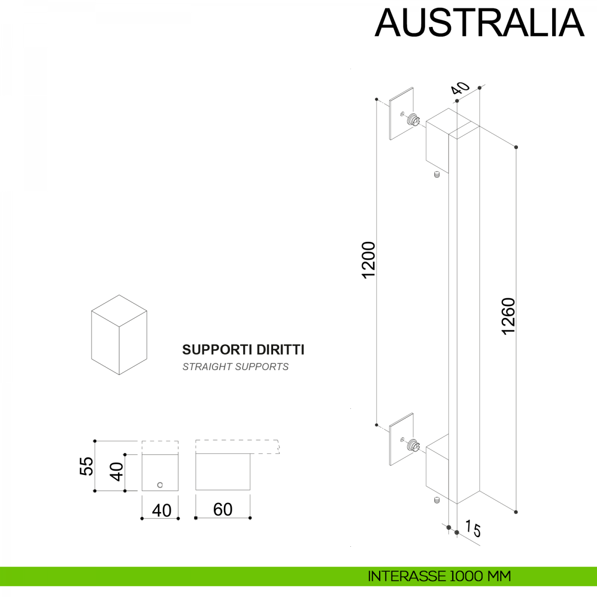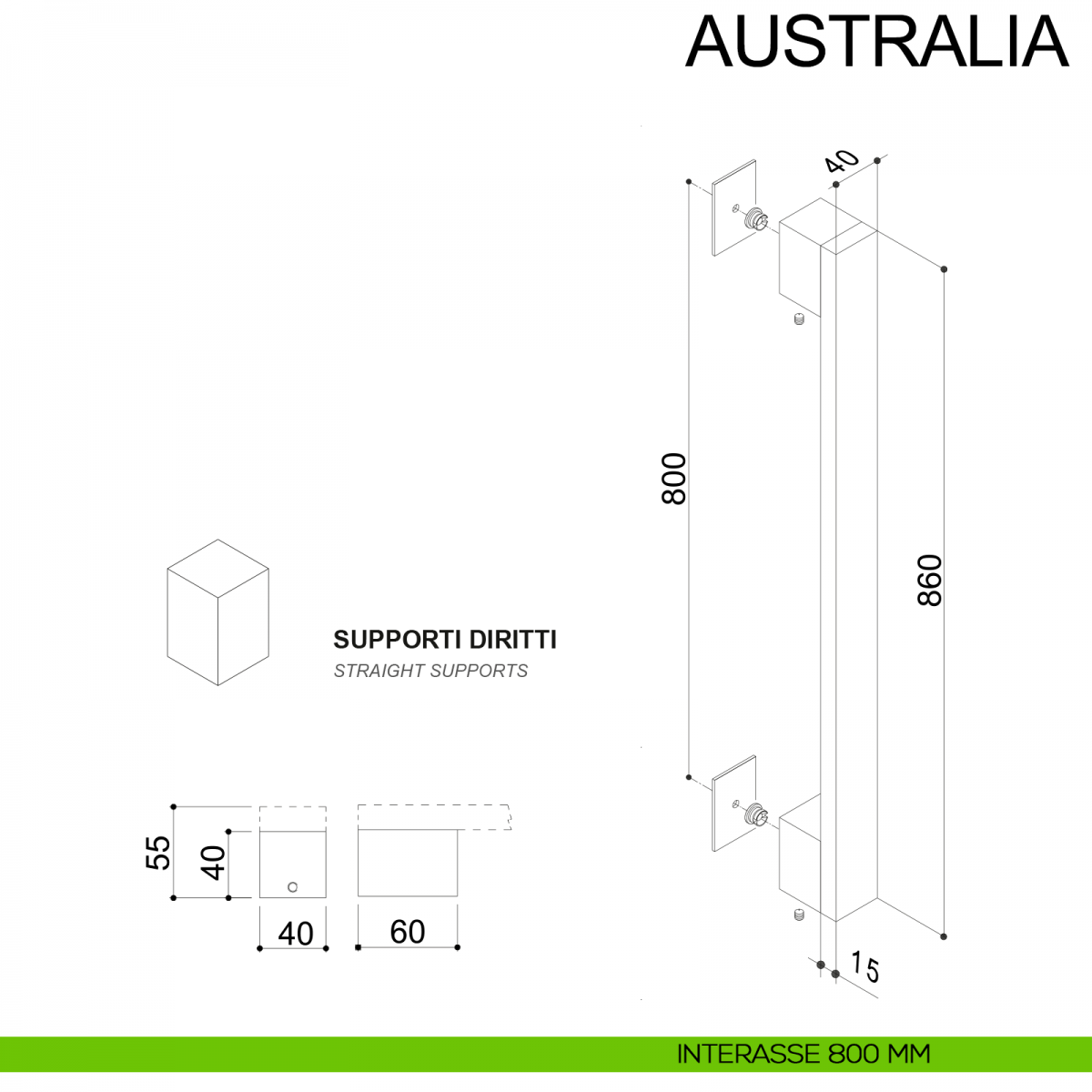 Maniglione dritto in acciaio quadrato per porta 40x15 mm Australia Fimet Inox senza rosette comprensivo di kit per il fissaggio. Design by Fimet Inox Project.