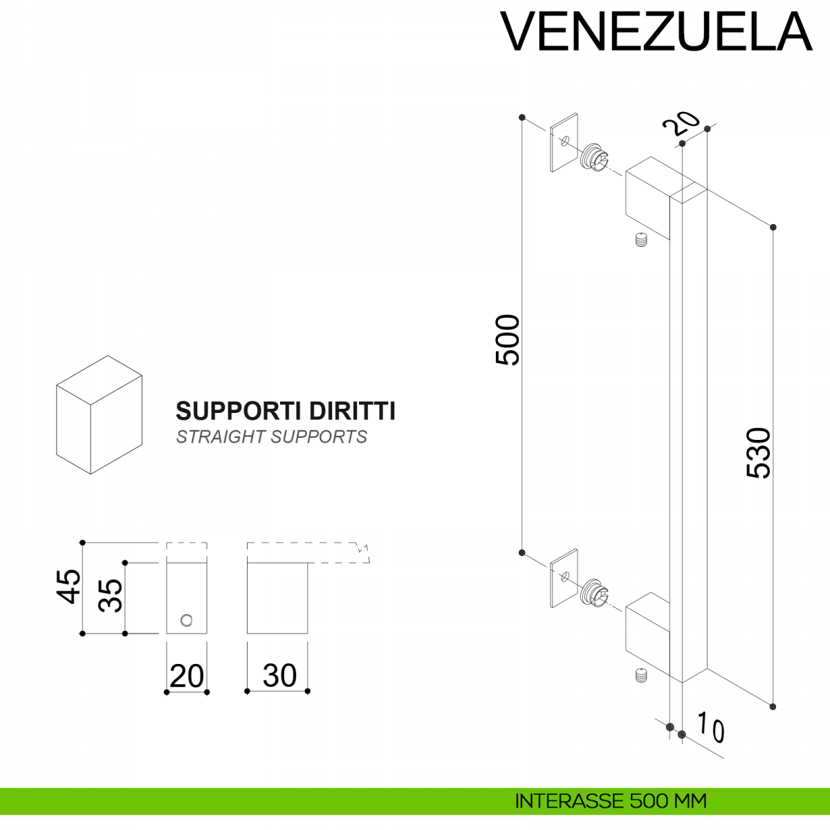 Maniglione squadrato dritto in acciaio per porta 20x10 mm Venezuela Fimet Inox senza rosette comprensivo di kit per il fissaggio. Design by Fimet Inox Project.