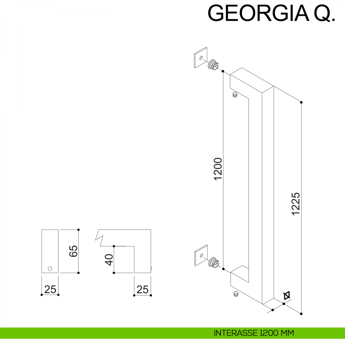 Maniglione dritto in acciaio squadrato per porta 25x25 mm Georgia Q Fimet Inox senza rosette comprensivo di kit per il fissaggio. Design by Fimet Inox Project.